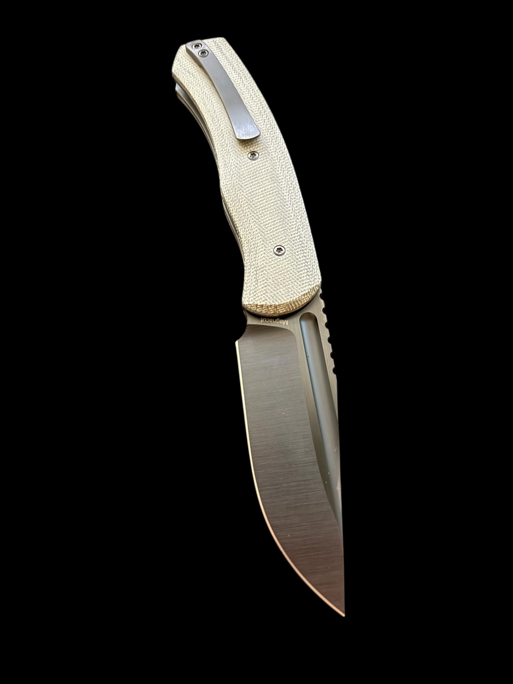 Alpha - The Alpha is the Knife between the Tick and the Iron Wolf. The Alpha started as a fix blade and which was a refined version of the original Iron wolf fix blade. So I decided to make it into a folder and keep the ergos and blade shape as close to the fix blade as possible. The Idea for the Liner lock was to look like a fix blade while open. The Alpha was designed as a front flipper as main deployment but the fuller makes for an amazing reverse flick. The Alpha is a mid/ large size knife but the buttery smooth handle contouring and streamline handle shape makes this knife melt into you hands. There is weigh reduction milled through out. The Alpha is perfect for everyday use or to tackle some larger task.