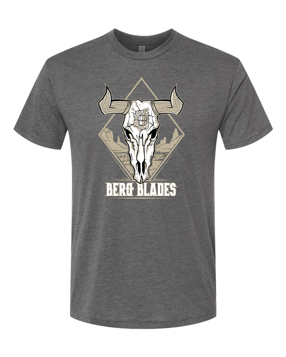 BergBlades Cow Skull Vintage Heavy Metal Grey T-Shirt